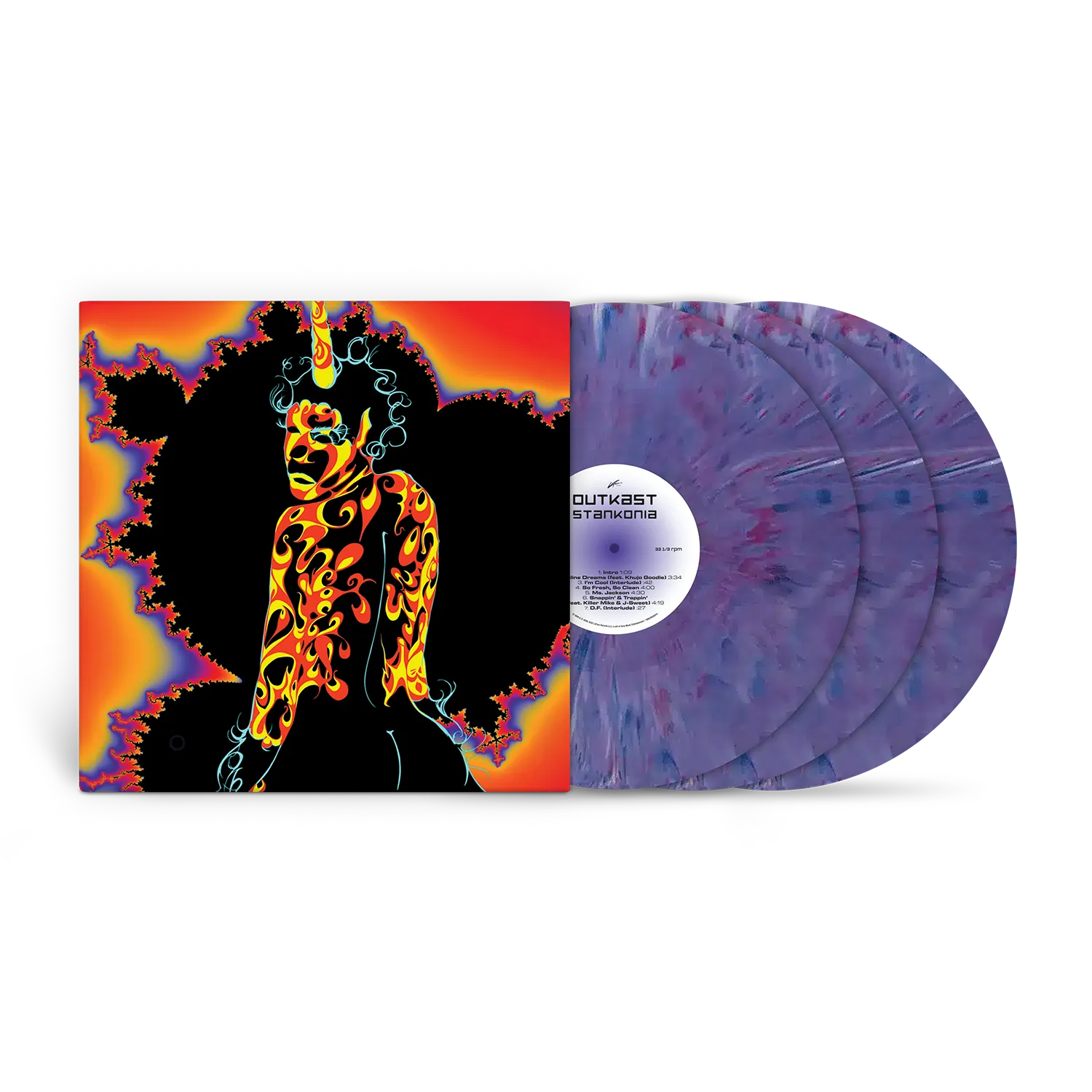 Celebrate 25 years of Outkast’s iconic Stankonia with this expanded 3LP set, pressed on eye-catching purple marble vinyl. Featuring exclusive bonus tracks, unreleased photos, and cover art by André 3000, this collector’s edition also includes a glow-in-the-dark poster.